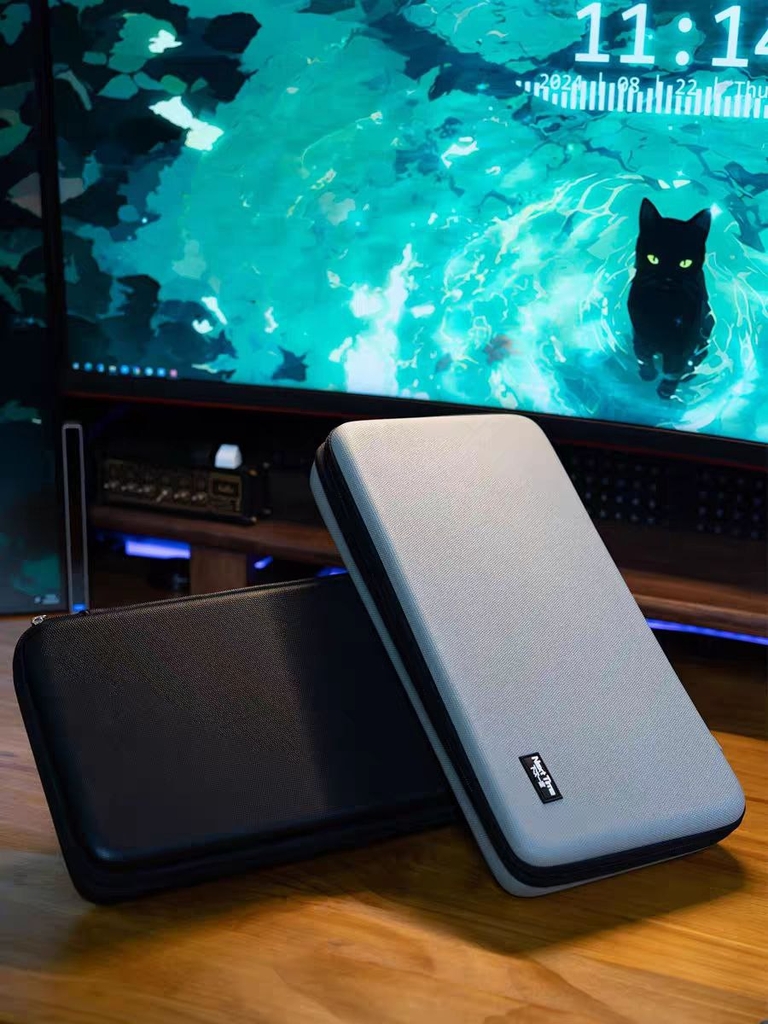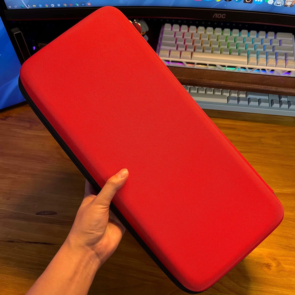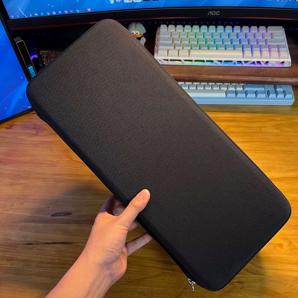 Kích thước bên ngoài: 374*205*61mm - Vỏ cứng PU + EVAKích thước trong lòng: 329*142*40mm, phù hợp với phím 75%