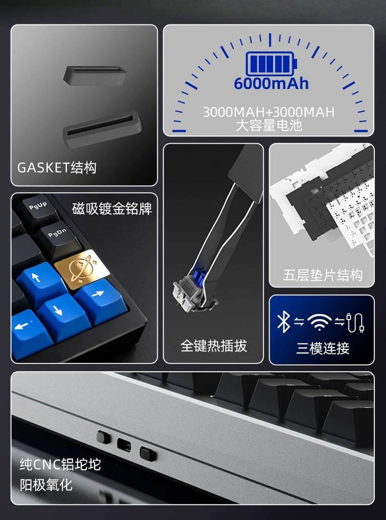 - 3 modes kết nối, pin 6000mah (3000mah + 3000mah)