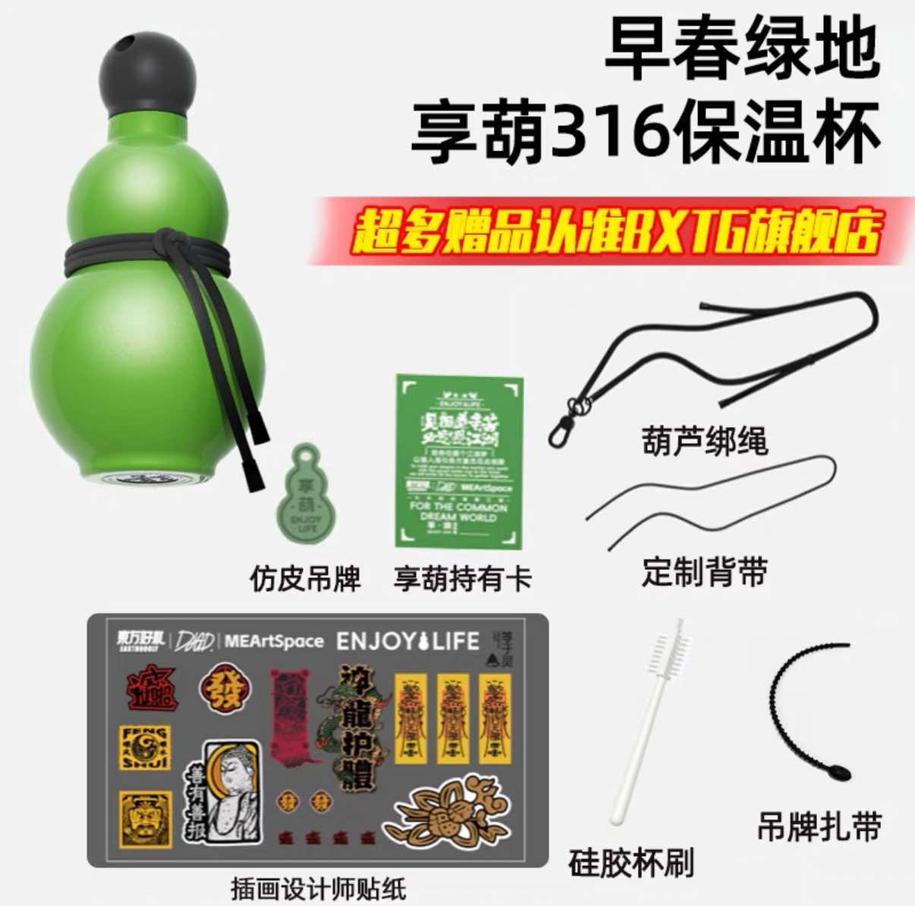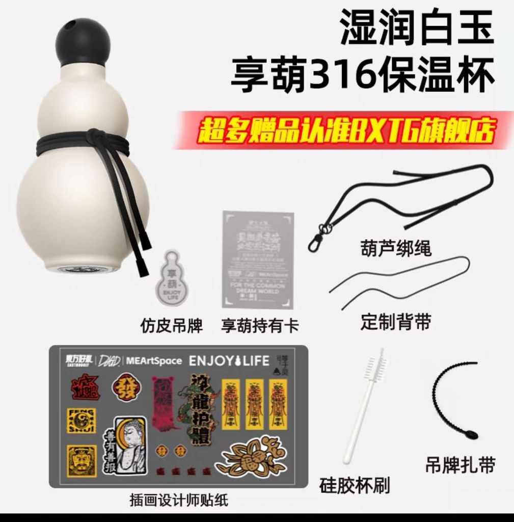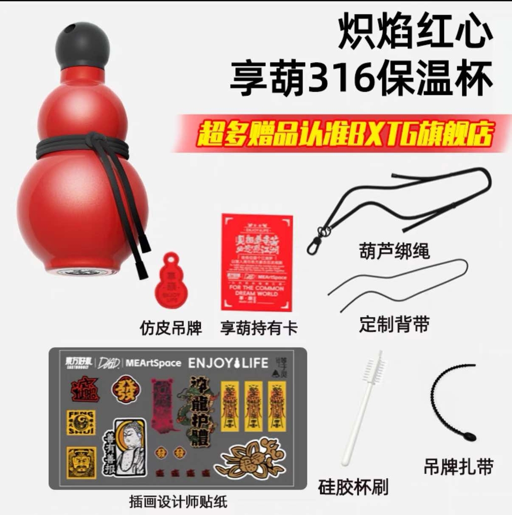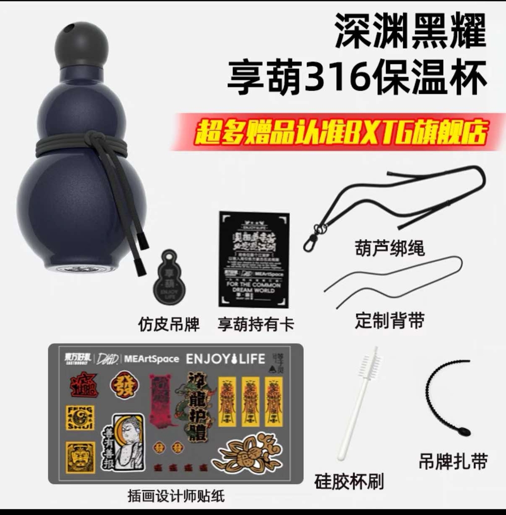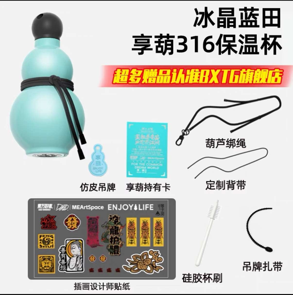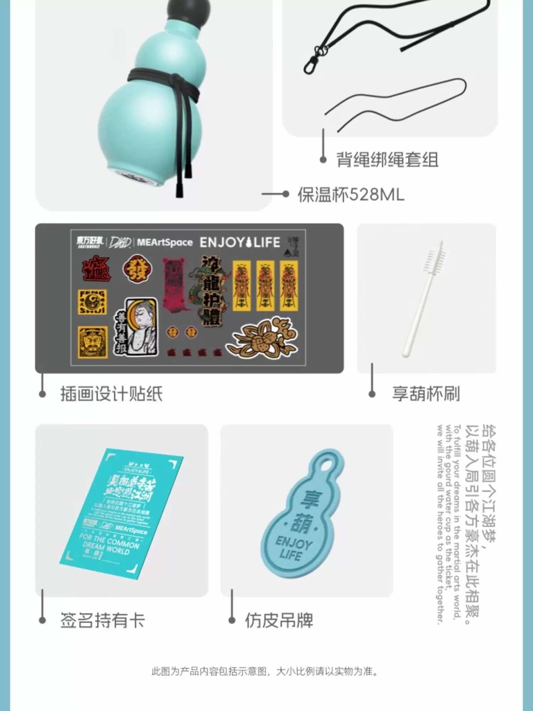 Đồ đi kèm: ngoài cốc thì có kèm theo 1 bộ dây đeo, 1 thẻ da pu , 1 bàn chải cốc, 1 bộ sticker bùa chú