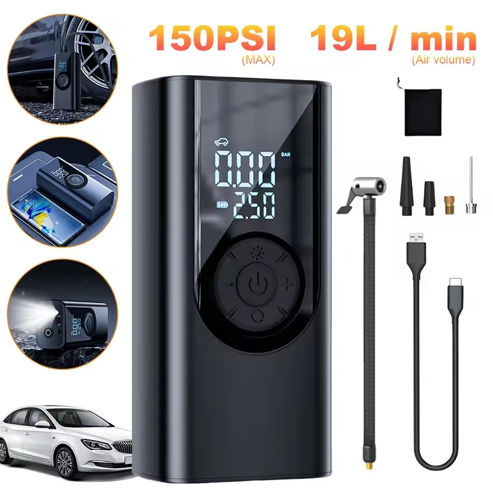 Đóng hộp: máy bơm, ống bơm 1m, bộ đầu bơm 4 món, cáp sạc Type-C ,túi vải
