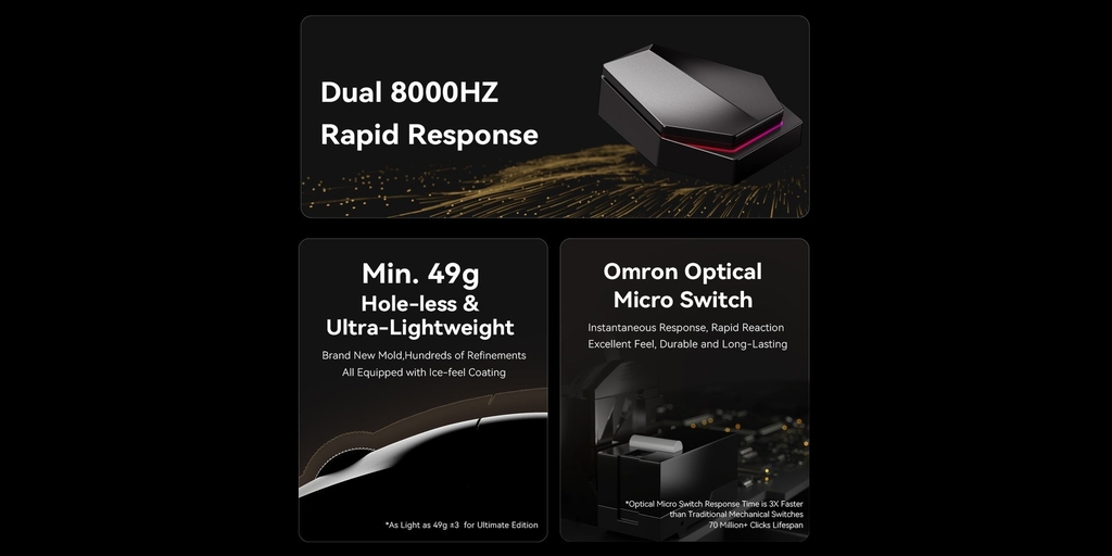 - X1 Ultimate: Sensor PAW3950 Ultra, Nordic 52840, Sw Omron Optical D2Fp, feet fullsize, receiver 8k, Tặng kèm Pad ATK