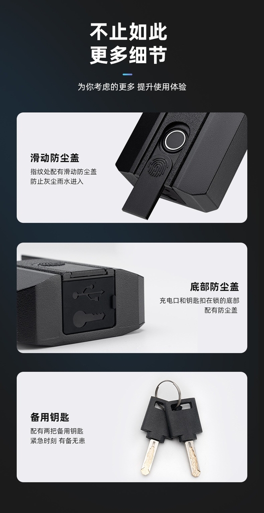 - Phương thức mở khoá: vân tay, chìa khoá, ứng dụng