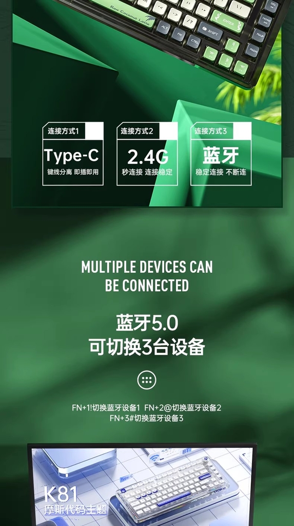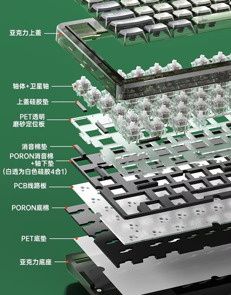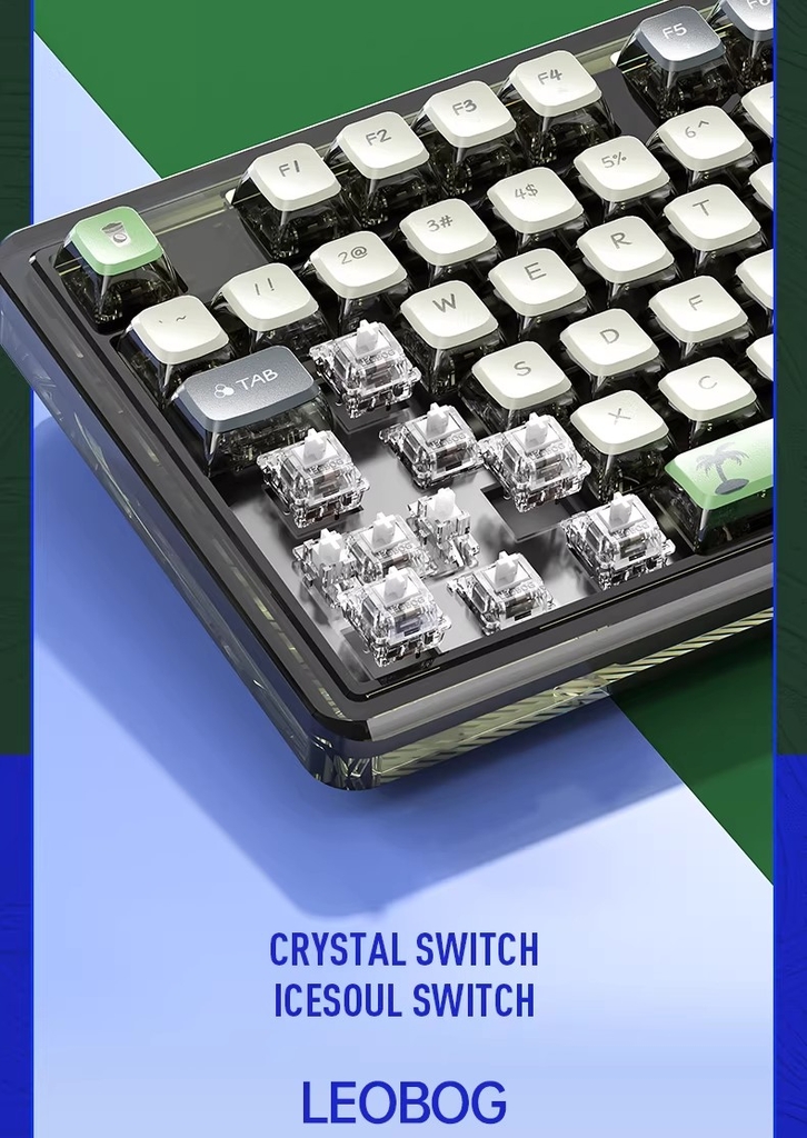 Sản phẩm đã bao gồm sw và kc: SW Ice Crystal Switch + Keycap 2 lớp (phần trên PBT, phần thân PC)